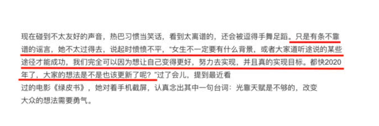 Đáp lại những nghi vấn về giải Kim Ưng, nữ diễn viên lên tiếng thể hiện nỗi lòng: “Là con gái không cần phải có bất kỳ những bối cảnh, nền tảng nào hoặc là phải như mọi người nói đi đường tắt mới có thể thành công. Chúng ta có thể làm cho bản thân mình ngày càng tốt hơn. Làm việc chăm chỉ để có được, đồng thời thực hiện những mục tiêu đã đặt ra. Rất nhanh sẽ đến năm 2020, và mọi người cũng nên đổi mới lại suy nghĩ của mình”