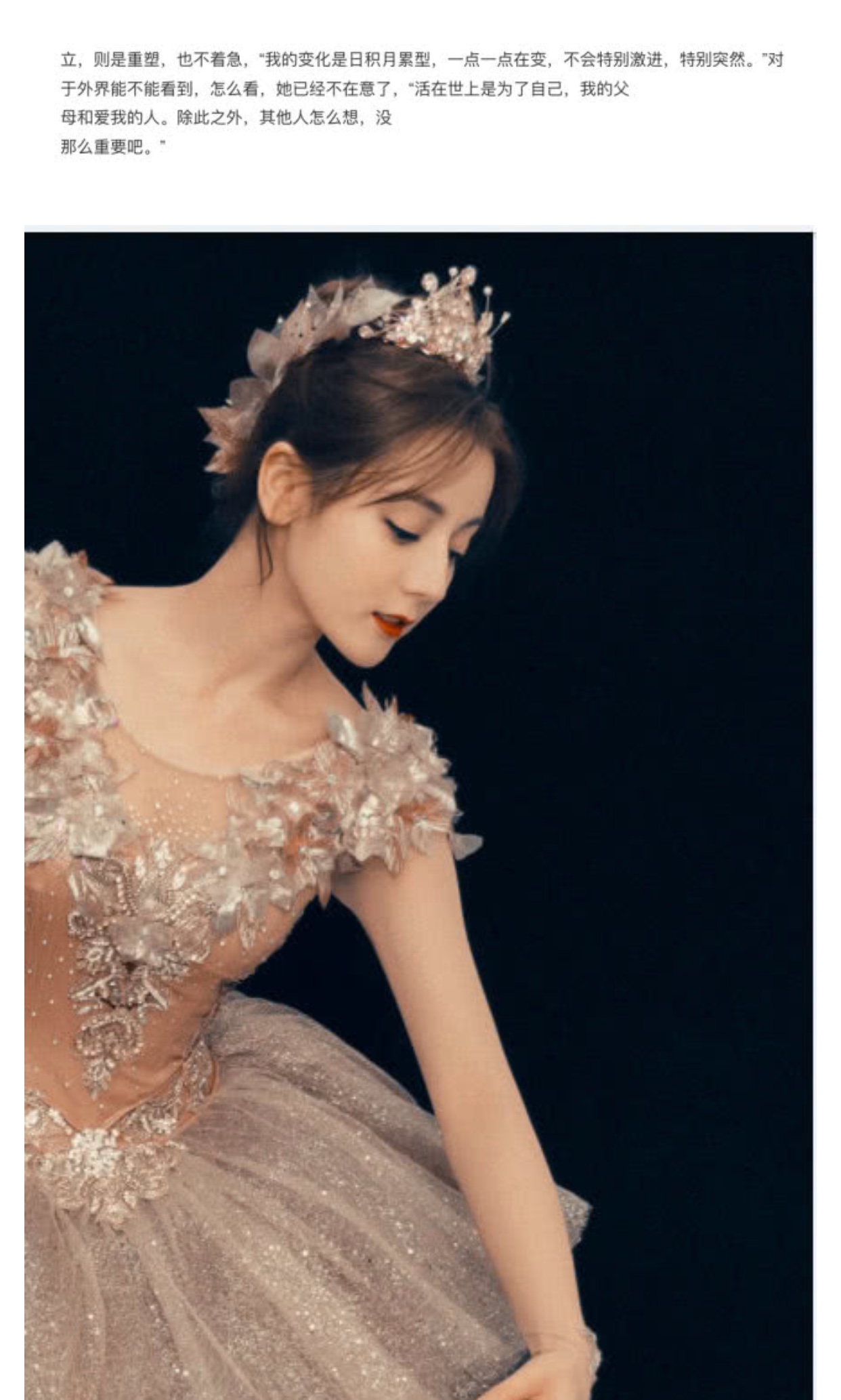 Mới đây, trong bài phỏng vấn độc quyền, Địch Lệ Nhiệt Ba đã chia sẻ những cảm xúc của mình về những tin đồn tiêu cực, gián tiếp phủ nhận chuyện nữ diễn viên có chống lưng: “Sống cho bản thân tôi, cho cha mẹ của tôi và những người yêu thương tôi. Ngoài ra, những người khác nghĩ gì không quá quan trọng”.