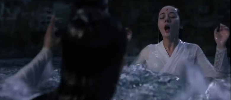 Mới đây, hình ảnh hậu trường của bộ phim được hé lộ. Cảnh quay khiến khán giả phải “bỏng mắt” nhất chỉ là khoảnh khắc Địch Lệ Nhiệt Ba bị rơi xuống hồ và hình ảnh toàn thân cô nàng bị ướt sũng để lộ thân hình “chuẩn từng centimet” lấp ló sau lớp áo mỏng trông vô cùng gợi cảm.