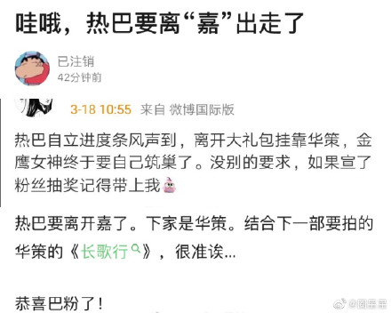 Tin này vừa lắng xuống một thời gian thì hôm nay lại xuất hiện tin Địch Lệ Nhiệt Ba sắp rời khỏi Gia Hành, công ty mà cô sẽ ký kết tiếp theo là Hoa Sách. Đồng thời, nữ diễn viên sẽ quay Trường ca hành - phim mới của Hoa Sách như một tài nguyên chào mừng về “nhà mời”. Về tác phẩm Trường ca hành, nhiều lần trên mạng xuất hiện tin tức Địch Lệ Nhiệt Ba sẽ đảm nhận vai nữ chính của dự án này nhưng đến nay vẫn chưa được xác nhận.