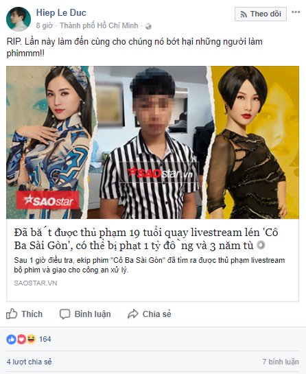 Chân dung kẻ livestream phim Cô Ba Sài Gòn.