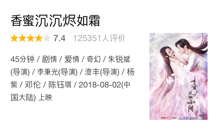 “Hương mật tựa khói sương” có sự tham gia của Đặng Luân, Dương Tử đạt 7.4 điểm.