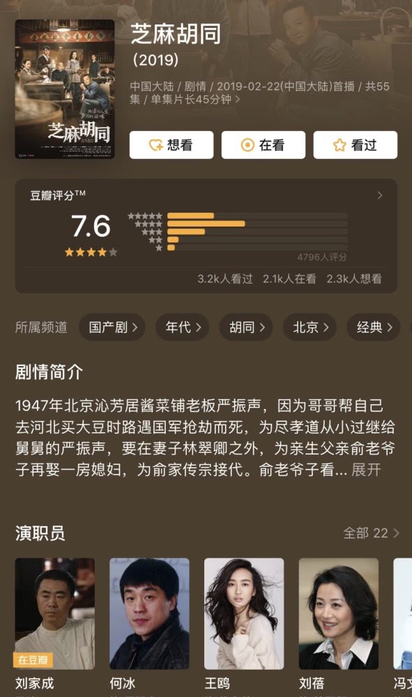 Con hẻm chi ma (芝麻胡同) do các diễn viên Hà Băng, Vương Âu, Lưu Bội đóng chính, đạt điểm đánh giá 7,6. Bộ phim này vốn được hy vọng sẽ trở thành một bộ phim vô cùng chất lượng do Trung Quốc sản xuất. Tuy nhiên do một số chuyện đời tư của Vương Âu cũng khiến bộ phim này chịu ít nhiều ảnh hưởng, hơn nữa bộ phim cũng không được tuyên truyền rộng rãi cho nên cuối cùng đã không trở thành một bộ phim nổi tiếng như mong đợi. Tuy nhiên với số điểm 7,6 cũng là một thành tích không tồi dành cho bộ phim này.