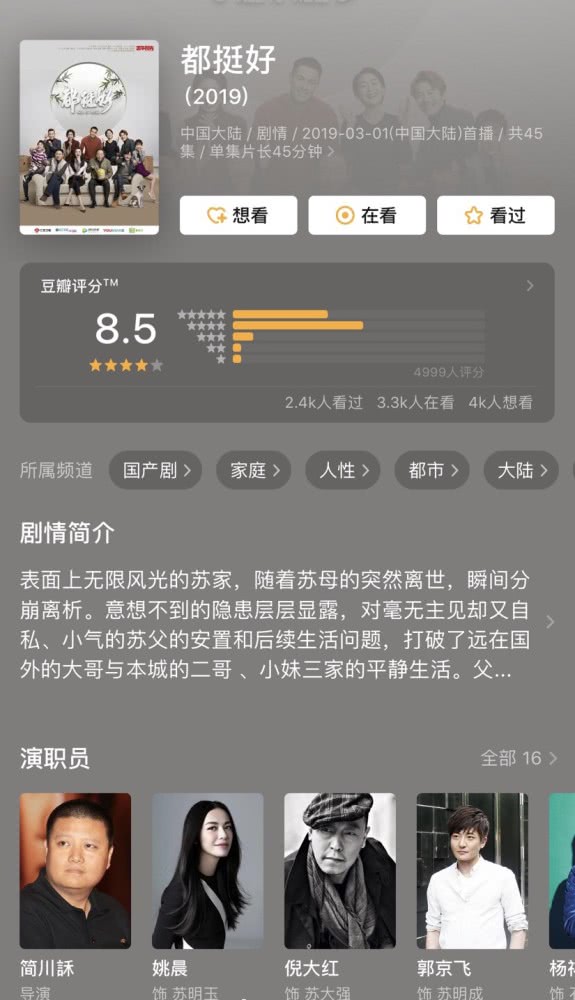 Đều rất tốt (都挺好) được xem là bộ phim hot nhất trong năm 2019 tính đến thời điểm hiện tại với số điểm đánh giá cao nhất 8,5 điểm. Đây là bộ phim thể loại đô thị tình cảm do Diêu Thần, Nghê Đại Hồng, Quách Kinh Phi…đóng chính. Đều rất tốt được chuyển thể từ tiểu thuyết của tác giả A Nại (đồng tác giả của Hoan Lạc tụng) do Chính Ngọ Dương Quang sản xuất. Bộ phim kể về cô gái Tô Minh Ngọc (Diêu Thần) từ nhỏ đã không được gia đình yêu thương, trưởng thành trong hoàn cảnh cô độc. Với chủ đề về gia đình, đặc biệt quan điểm trọng nam khinh nữ nhắc đến trong phim được đông đảo khán giả quan tâm yêu thích và cũng nhận được sự đồng cảm của khán giả. Chỉ vài ngày sau khi lên sóng, bộ phim đã nhận được rất nhiều bình luận của khán giả, đây cũng là bộ phim vô cùng khả quan trong năm 2019 này.