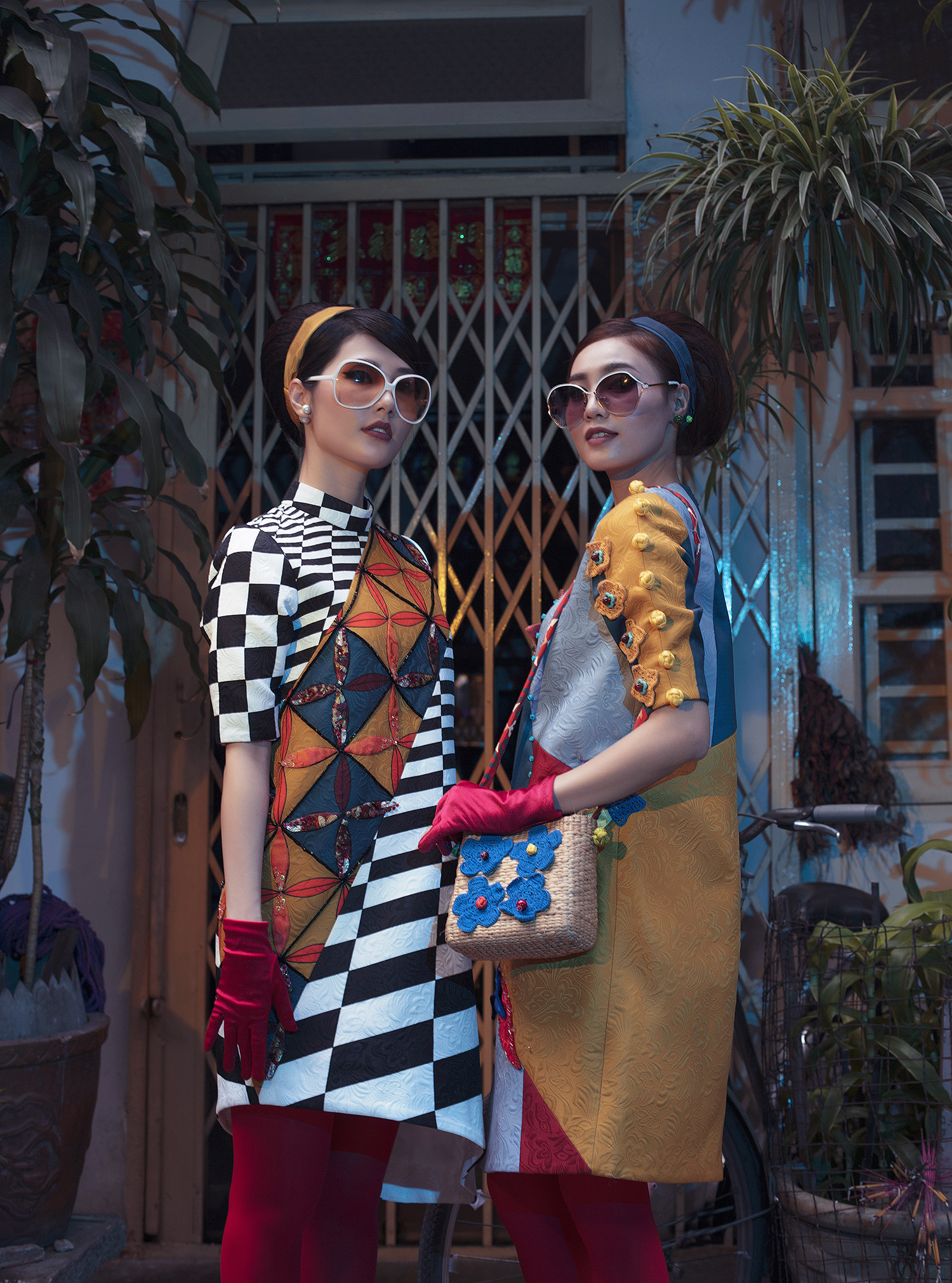 Lấy cảm hứng từ những hoa văn gạch bông đặc trưng trong kiến trúc Đông Dương một thời, điểm nhấn của BST Cô Ba Sài Gòn chính là đã biến tấu đầy sáng tạo những hoạ tiết vốn quen thuộc đó trên nền trang phục. Trong phim Cô Ba Sài Gòn, Ninh Dương Lan Ngọc và Diễm My vốn đại diện cho những màu sắc thời trang khác nhau.