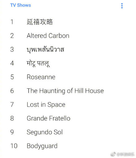 Mới đây, theo công bố của Google, Diên Hi công lược đã lọt top trending của Google 2018 khi sức ảnh hưởng, công phá của bộ phim quá lớn và từ khóa đứng đầu trong chuyên mục phim truyền hình được tìm kiếm nhiều nhất trên toàn cầu. Dễ dàng nhận thấy, bộ phim của Vu Chính đánh bại tất cả đối thủ nặng ký của Mỹ, thể hiện tầm ảnh hưởng của tác phẩm này ở cả bên ngoài Trung Quốc.