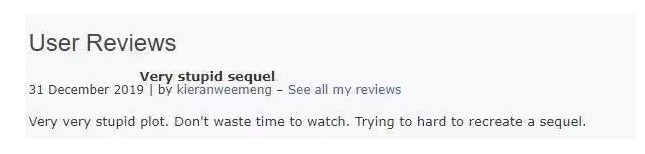 Trên IMDb, Kim chi ngọc diệp cũng chỉ đạt 5,4 điểm, có khán giả nước ngoài còn đánh giá 1 sao với lời bình: “Cốt truyện rất rất rất ngu ngốc, tốt nhất đừng lãng phí thời gian xem!”