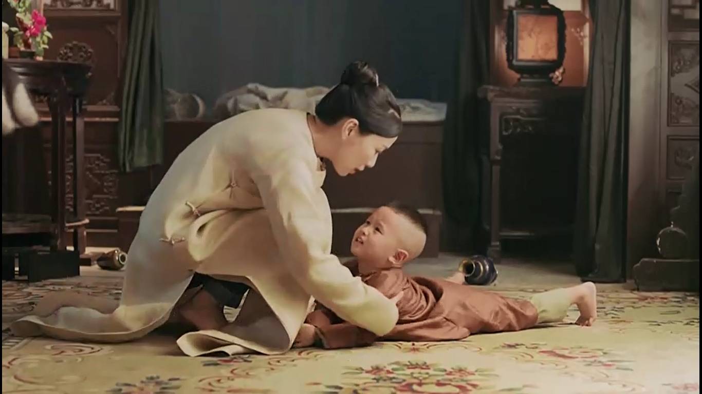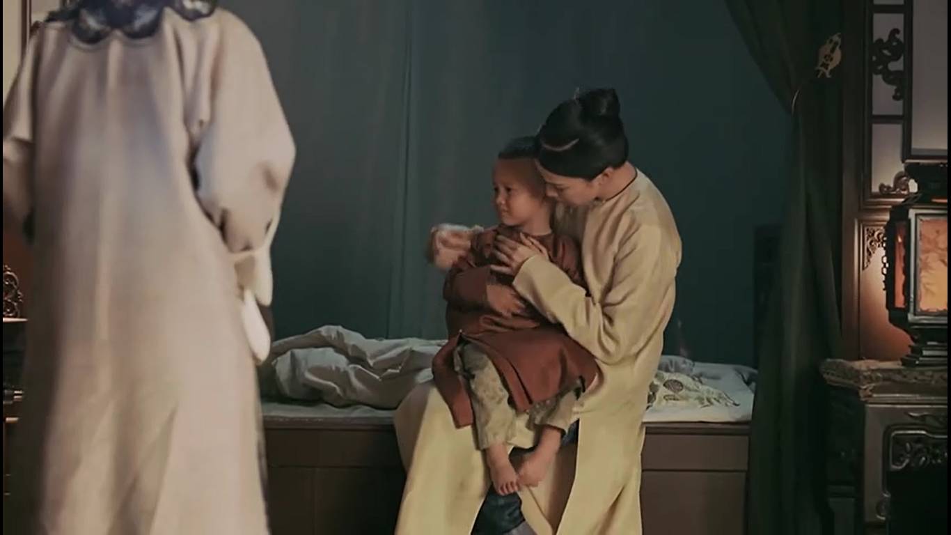 Lúc này, Nhàn Phi đột nhiên nghe thấy tiếng khóc ở phòng bên cạnh vang lên, cô vội vàng chạy đến, thậm chí còn chưa kịp mang cả vớ, giày. Hoá ra cậu bé Vĩnh Thành một mình thức giấc trong đêm. Nhàn Phi thấy vậy vội chạy đến chăm sóc cho Vĩnh Thành. Dù chưa từng sinh con, chưa từng chăm trẻ nhỏ, nhưng Nhàn Phi, với bản năng làm mẹ sâu thẳm được đánh thức, đã không quản khó khăn, hết lòng săn sóc cho Tứ A ca, xem bé như con ruột của mình.