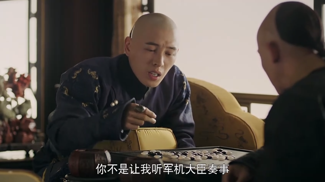 Về phía Hoằng Trú, sau khi rời Trường Xuân cung đã bị Hoàng thượng (Nhiếp Viễn) giữ lại đánh cờ tại Dưỡng Tâm điện, lúc rảnh rỗi thì bàn về việc quân nên không có cách nào để xuất cung. Càn Long không ngừng khuyên Hoằng Trú phải chăm chỉ luyện tập để có thể phò tá mình. Nhưng Hoằng Trú với bản tính ham chơi không thể sửa làm cho Càn Long cũng hết cách, đành phải để Hoằng Trú rời đi.