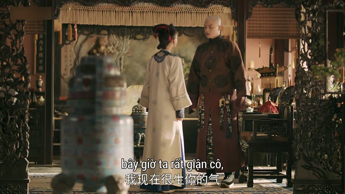 Vẻ mặt nửa giả vờ, nửa thật tình của Ngụy Anh Lạc khiến Phó Hằng khó chịu đôi chút. Ngay khi thấy sắc mặt anh biến đổi, Anh Lạc liền nói với anh rằng cô có làm 1 túi thơm, định tặng cho “ai đó”, nhưng có vẻ như bây giờ không cần nữa rồi. Như một đứa trẻ đang chờ quà, Phó Hằng liền nở nụ cười với Anh Lạc.
