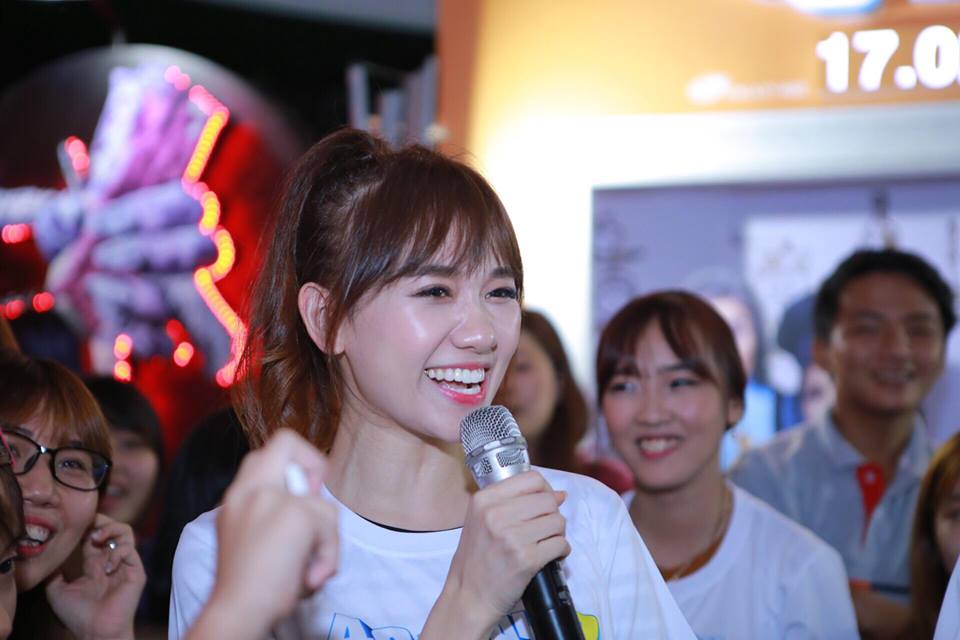 Hari Won vui vẻ chia sẻ với khán giả về những kỉ niệm trong quá trình đóng phim.