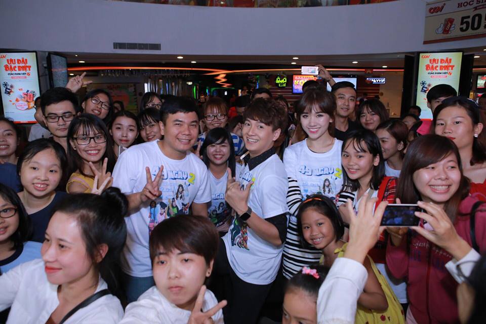 Rất đông khán giả đã có mặt, vô cùng thích thú khi được lắng nghe dàn diễn viên tâm sự về bộ phim, được giao lưu cũng như chụp hình cùng cả ekip. Ngô Kiến Huy và Hari Won - hai diễn viên chính của bộ phim rạng rỡ xuất hiện tại rạp, vui vẻ giao lưu và nhiệt tình selfie cùng người hâm mộ.