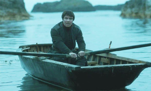 Gendry chèo thuyền chạy trốn.