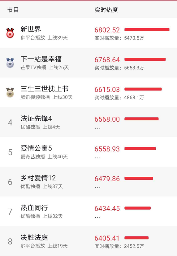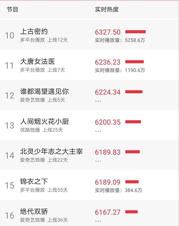 Từ các số liệu của các đài có thể thấy ba bộ phim truyền hình của thành viên TFBoys thực ra đều ngang ngang nhau nhưng Nhiệt huyết đồng hành vẫn có phẩn nhỉnh hơn khi xếp thứ 7 về độ hot, sau Thế giới mới, Trạm kế tiếp là hạnh phúc, Tam sinh tam thế Chẩm thượng thư, Bằng chứng thép 4 và Ái tình công ngụ 5. Độ nổi tiếng của Thượng cổ mật ước xếp phía sau với vị trí thứ 10, sau Quan hệ hoàn mỹ vừa mới ra mắt, trong khi đó Đại chúa tể lại xếp vị trí thứ 14, miễn cưỡng vượt qua Cẩm y chi hạ - phim đã kết thúc khá lâu.