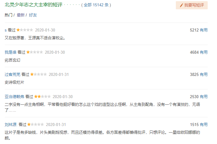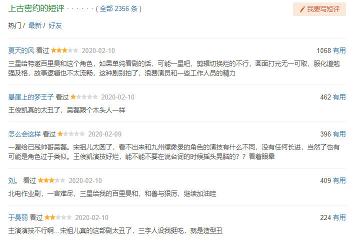 Trong khi đó, hai tác phẩm khác là Đại chúa tể của Vương Nguyên và Thượng cổ mật ước của Vương Tuấn Khải có phần kém hơn khi danh tiếng phim đã không tốt mà điểm đánh giá trên Douban mãi vẫn chưa hiển thị. Về phương diện đánh giá thì cơ bản đều là 1 và 2 sao.
