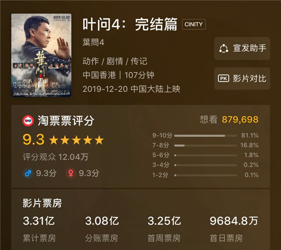 Diệp Vấn 4 không chỉ là phim điện ảnh được đánh giá với số điểm cao hơn so với các bộ phim đang chiếu khác, mà còn là bộ phim hành động Hoa ngữ có số điểm cao trong năm nay.