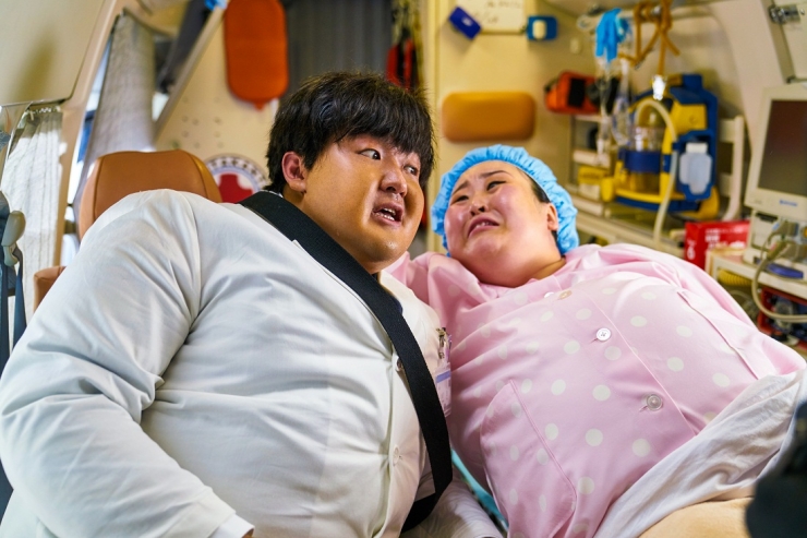Trong khi đó, J bị đưa vào phòng hộ sinh, khi các điều dưỡng hoang mang về sự nhầm lẫn thì bác sĩ lại quyết định mổ để lấy em bé ra khỏi chiếc bụng to vượt mặt kia. Trốn khỏi phòng hộ sinh, J lại bị một đại ca giang hồ và đồng bọn truy đuổi vì tưởng đó là vợ mình. Cả hai gặp lại nhau bên ngoài bệnh viện và trốn chạy trên chiếc xe với hình ảnh khá oái ăm, J bị mắc kẹt ở cửa xe với nửa người bên trong và nửa người bên ngoài xe.