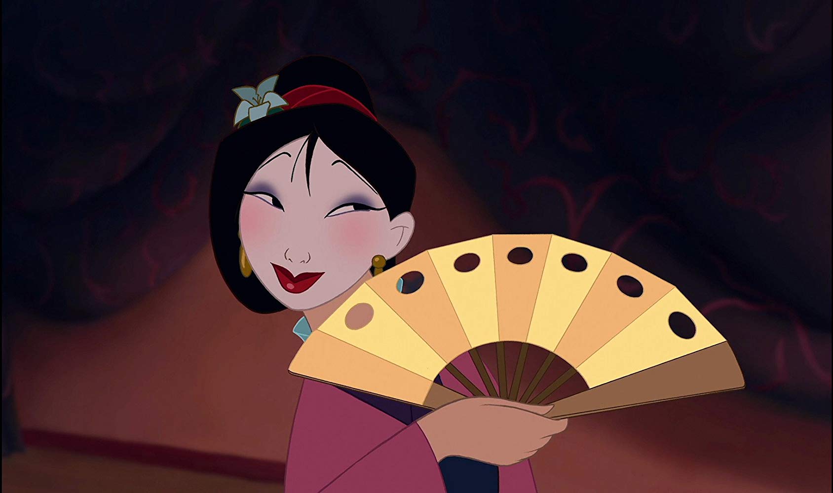 Disney bắt đầu trình chiếu một trích đoạn của phim. Trong đó, Mulan ăn mặc gọn gàng. Cô có vẻ không thoải mái. Khuôn mặt của cô được trang điểm kỹ càng. Sau đó, cô đi bộ ra ngoài và thể hiện sự đói của mình nhưng không thể ăn vì nó sẽ làm hỏng lớp trang điểm. Mulan giải thích rằng cho dù cô ấy có khuôn mặt nào, không ai có thể nói cảm xúc của cô ấy là gì, và rồi cô cười với một người bạn. Sau đó, cô được bảo là “im lặng” và “duyên dáng” để trở thành một người vợ tốt khi cô chuẩn bị trà.