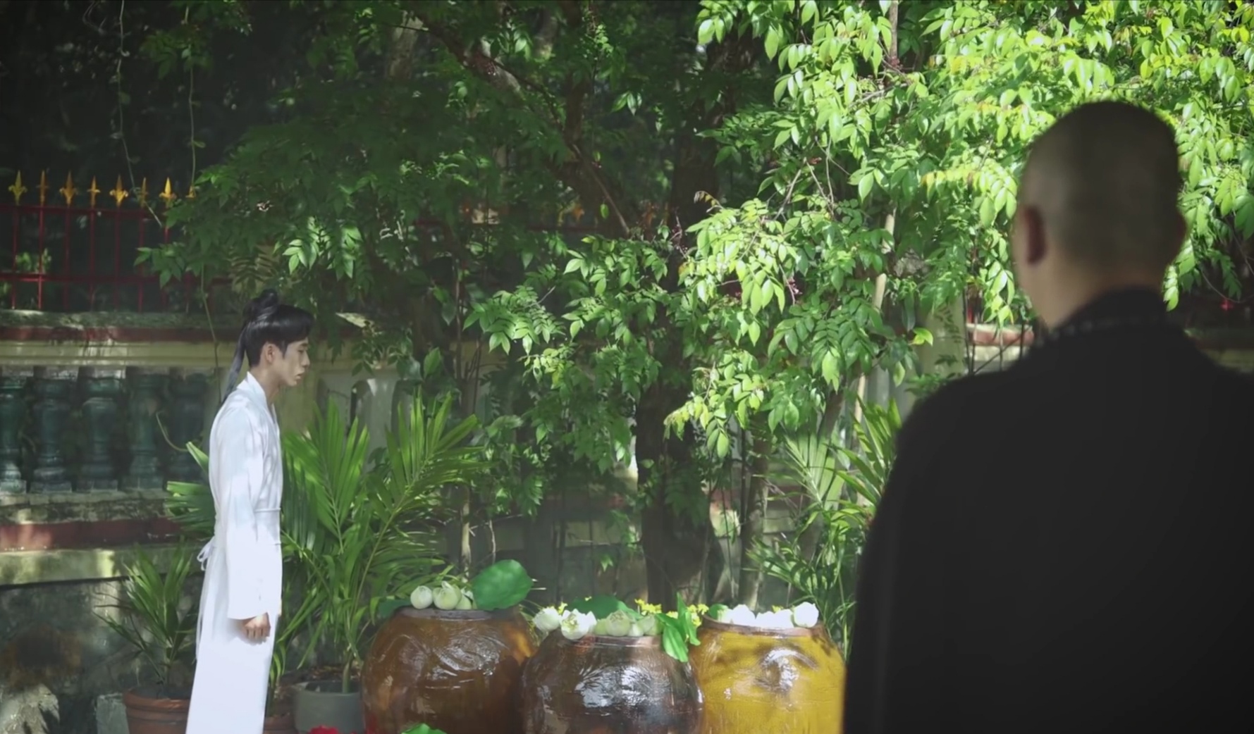 Từ đây, xuất hiện như hình ảnh ẩn dụ cho bóng hình đã tan biến của Ngư Nhi, đóa sen mà Tâm Minh chăm sóc suốt bao năm ra hoa trở lại. Tuy vậy, giọt nước mắt muộn màng của Tâm Minh như thay cho tiếng lòng. Rằng tin vào lý trí mà dứt đoạn tình duyên, Tâm Minh giờ đây chỉ biết đem nỗi nhớ thương gửi vào cánh sen trắng muốt. Song lúc này, lời khuyên của sư thầy như thức tỉnh tâm hồn Tâm Minh. Bởi “gỗ đá sao có thể thành Phật”, Tâm Minh nếu không trải qua khổ đau sẽ khó lòng phổ độ chúng sinh.