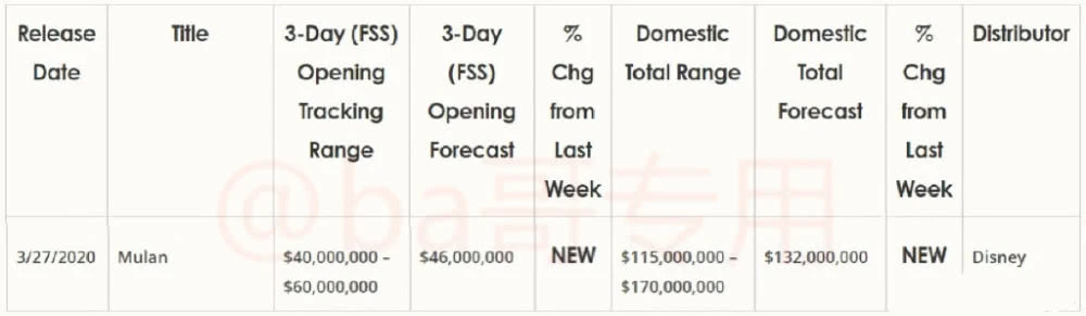 Mulan ra mắt có thể đảo ngược tình thế nếu đây là một tác phẩm xuất sắc, hiệu ứng truyền miệng sẽ cứu vớt bộ phim. Tuy nhiên, với tác động của dịch bệnh viêm phổi virus corona đang ảnh hưởng rất lớn trên toàn cầu, lượng vé cũng đã được bán trước, khả năng Mulan dời lịch chiếu là rất thấp.