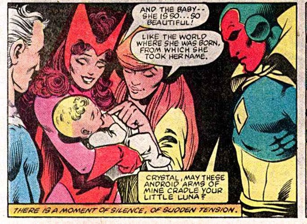 Có thể nhiều người chưa biết, trong phiên bản truyện tranh, Scarlet Witch đã từng là một Avengers, nhưng rồi biến cố xảy ra, và rồi cô đã quay lưng với mọi thứ. Luôn là một người với quyền năng vô cùng to lớn, bản thân Scarlet Witch thậm chí có thể tạo nên một thực tại mới, nơi mà mong muốn của tất cả mọi người đều trở thành hiện thực. Cô cùng Vision đã có một mối tình đẹp như mơ, cả 2 nhân vật thậm chí cũng đã có hẳn một bộ truyện tranh riêng, và sắp tới đây là series phim truyền hình mang tên Wanda Vision được chiếu trên kênh stream của Disney+. Họ đã có cho mình 2 đứa con tên là Billy và Tommy, tuy nhiên, sau này thì nhóm Avengers mới phát hiện, rằng chúng không phải thật sự là con người vì Vision là người máy, hoàn toàn không có khả năng sinh sản. 2 đứa trẻ đã được Wanda tạo nên từ chính yêu thuật của mình.