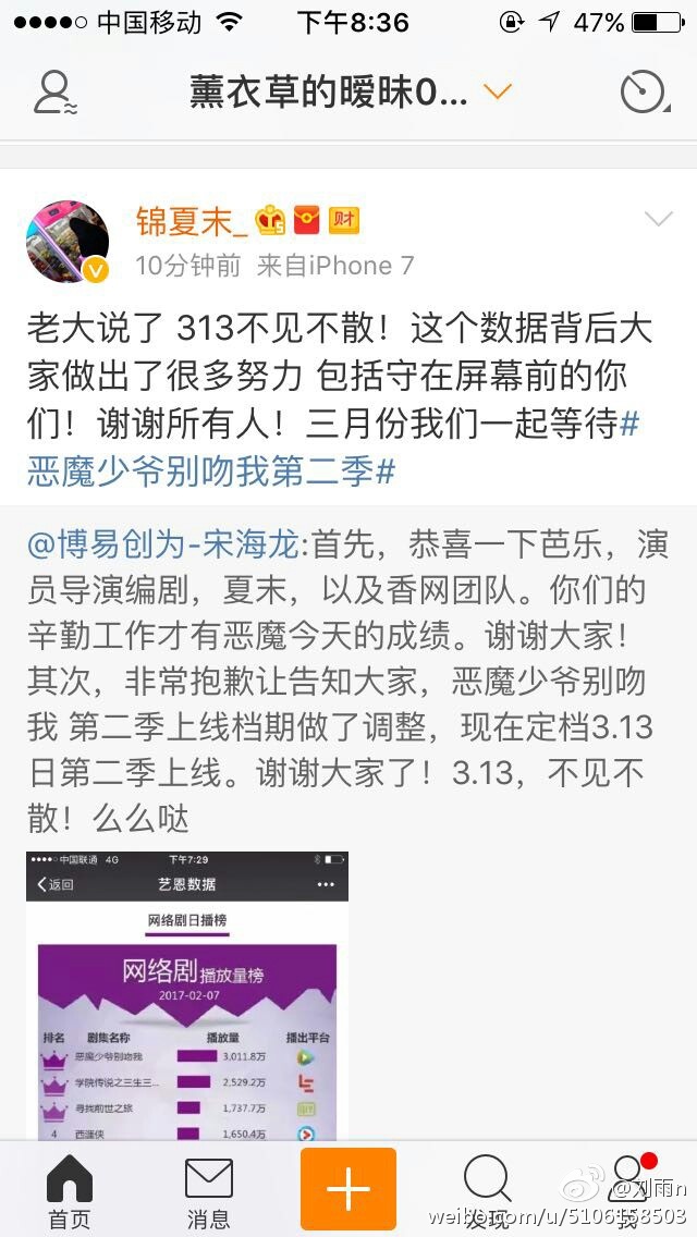 Sau 25 tập phát sóng với những diễn biến bất ngờ, người hâm mộ bộ phim Ác ma thiếu gia đừng hôn tôi hiện đang rất nóng lòng được thưởng thức phần 2. Tuy nhiên mới đây, trang weibo chính thức của nhà sản xuất đã đột ngột đưa ra thông báo dời lịch chiếu.