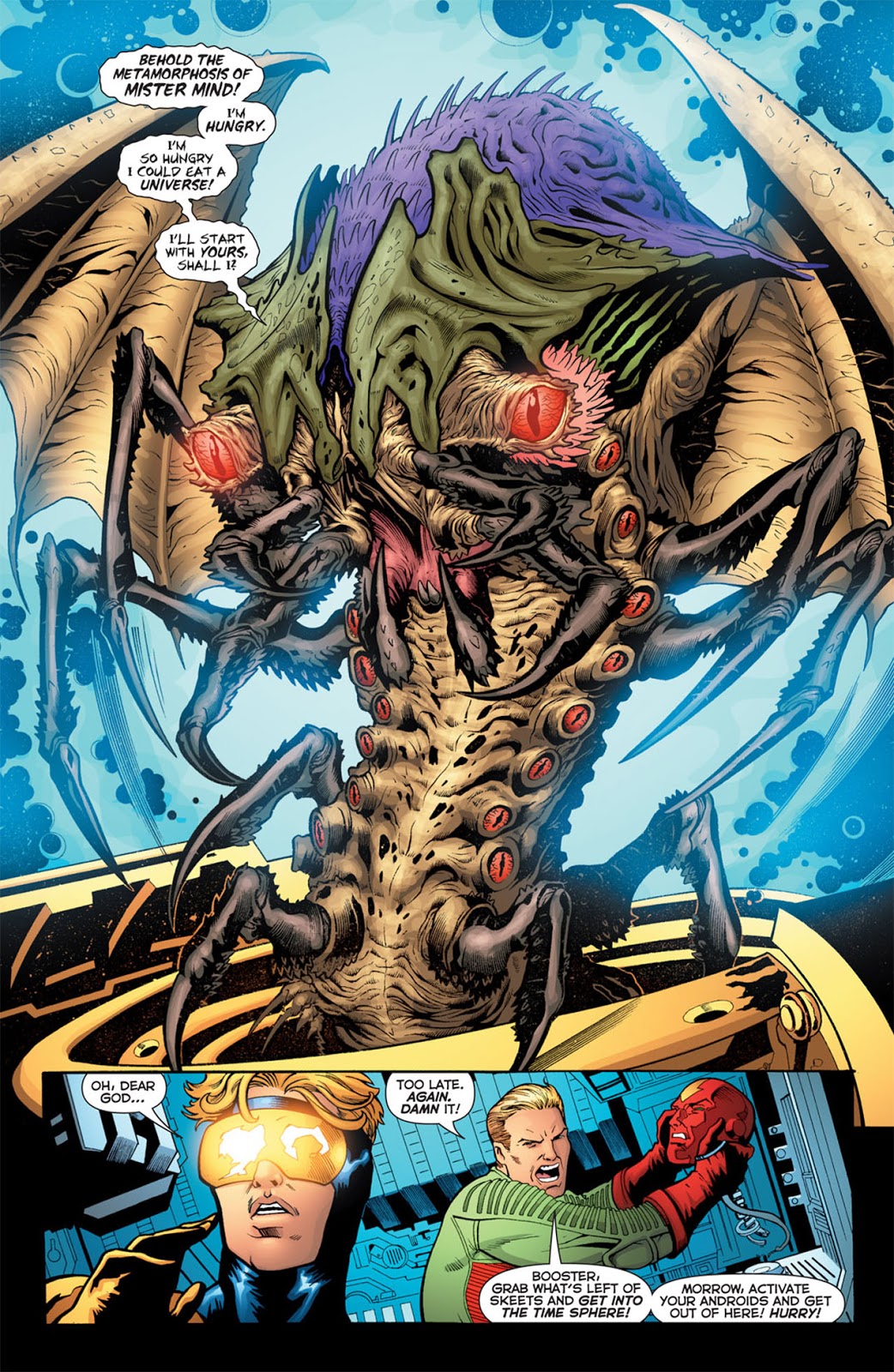 Nhà du hành thời gian Rip Hunter buộc phải du hành đến quá khứ, lấy cắp Suspendium từ tầng hầm của Sivana, sau đó cứu cả Đa vũ trụ DC bằng cách nhốt Mr. Mind vào trong Skeets, con robot của Booster Gold để đẩy hắn trở lại thời điểm hắn gặp Sivana và khiến hắn bị nhốt trong một vòng lặp thời gian.