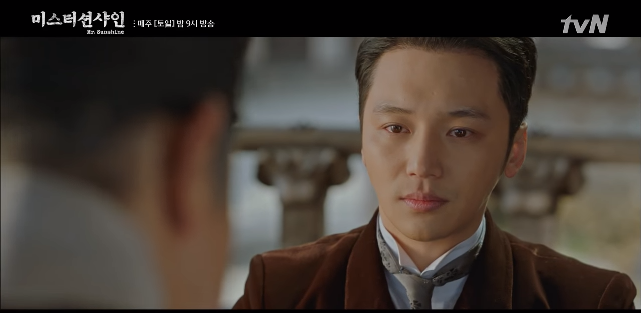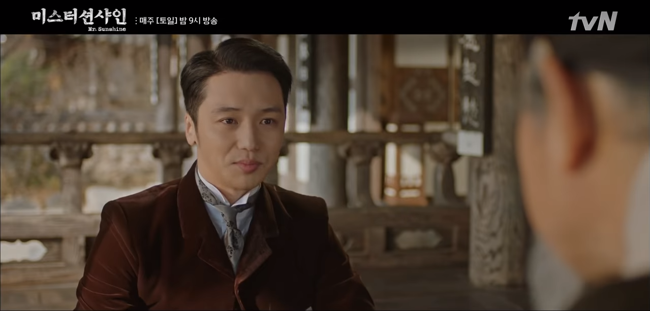 Trong tập đầu của Mr. Sunshine, bộ phim tập trung khắc họa quá khứ bi kịch của nam chính Choi Yoo Jin (Lee Byung Hyun) cũng như sự ra đời của nữ chính Go Ae Shin (Kim Tae Ri). Hai cameo là Kim Ji Won và Jin Goo vào vai mẹ của Go Ae Shin cũng được miêu tả một cách vô cùng bi thuơng. Đến gần cuối phim các nhân vật chính phiên bản trưởng thành là Go Ae Shin (Kim Tae Ri), Kim HeeSung (Byun Yo Han) và Goo Dong Mae (Yoo Yeon Seok) chính thức xuất hiện.