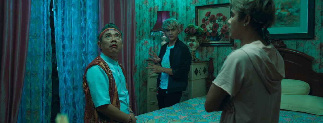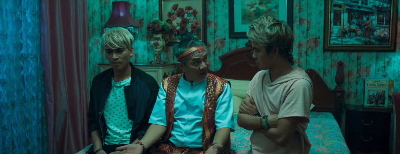 Nhân vật thầy pháp do Trung Dân thể hiện cũng mang nét hài hước không kém với các câu nói đều pha lẫn tiếng Thái, tiếng Việt và có cả tiếng Anh. Tình tiết trong phim không làm rõ đây là pháp sư thật hay giả nhưng lời hứa chắc chắn trừ được yêu nữ, việc dán bùa khắp phòng để trừ yêu cũng như bỏ chạy nhầm vào nhà vệ sinh thay vì chạy ra ngoài trong tình huống bị yêu nữ hù dọa đã khắc họa nên sự hài hước ở nhân vật này.