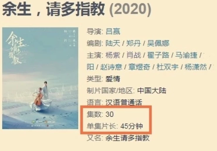 Trên trang đánh giá phim nổi tiếng nhất Trung Quốc Douban, Dư sinh, xin chỉ giáo nhiều hơn tạm ấn định thời gian ra mắt là vào tháng 11 năm nay. Độ dài bộ phim sẽ là 30 tập, mỗi tập có thời lượng 45 phút, phát sóng trên đài Hồ Nam.