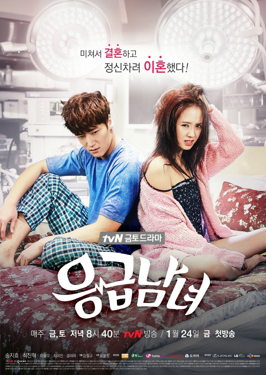 Emergency Couple từng nổi lên như một hiện tượng rating đầu năm 2014 của đài truyền hình cáp tvN xứ Hàn. Trong phim, át chủ bài của Running Man - Song Ji Hyo trở thành vợ của nam diễn viên Choi Jin Hyuk. Một người tương lai trở thành bác sĩ tài giỏi, một người là chuyên gia dinh dưỡng, thế nhưng vì tình yêu họ đã tạm thời từ bỏ ước mơ. Cả hai đã bất chấp tất cả, bỏ qua mọi rào cản và ngăn cấm của gia đình để đến với nhau. Rồi cuộc sống sau hôn nhân khiến họ bị vỡ mộng vì những vấn đề xung quanh nghề nghiệp, kinh tế gia đình và dẫn đến ly dị.