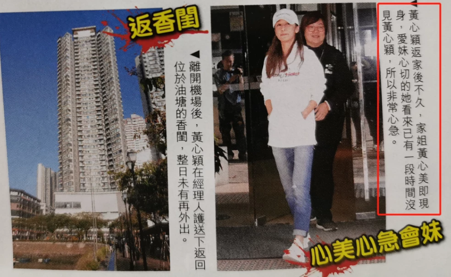 Sau khi rời khỏi sân bay, Huỳnh Tâm Dĩnh được người quản lý hộ tống về nhà, sau khi vào cửa thì không thấy ra ngoài. Huỳnh Tâm Dĩnh về nhà không bao lâu thì chị gái Huỳnh Tâm Mỹ nhanh chóng có mặt để gặp em gái.