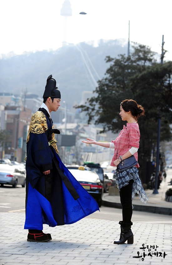 Dù đi giày cao, Ji Min vẫn thấp bé so với vị hoàng tử rơi từ gác mái