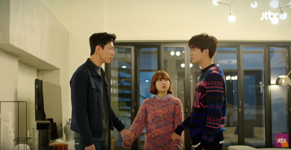 Ngay cả khi Bong Soon chen vào giữa, hai anh chàng vẫn có thể nhìn thẳng vào nhau.