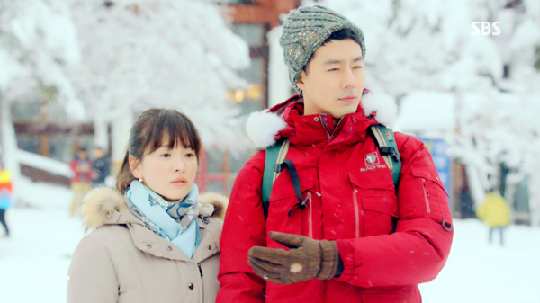 Trong những cảnh quay lãng mạn, ngọt ngào của Gió mùa đông năm ấy, Jo In Sung trở nên to lớn, ấm áp hơn khi đứng cạnh người tình bé nhỏ Song Hye Kyo.