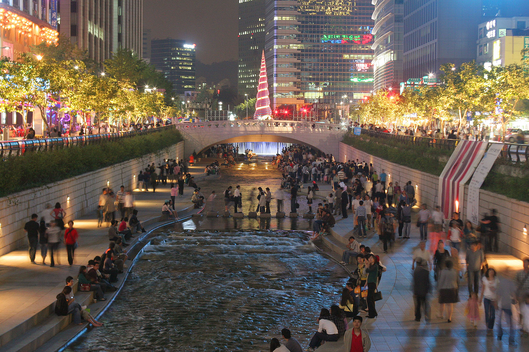 Cheonggyecheon là một suối nước nhân tạo chảy qua trung tâm Seoul. Đây là địa điểm thích hợp cho những ai muốn có một thời gian yên tĩnh để nghỉ ngơi và thoát khỏi khung cảnh bận rộn của thành phố.