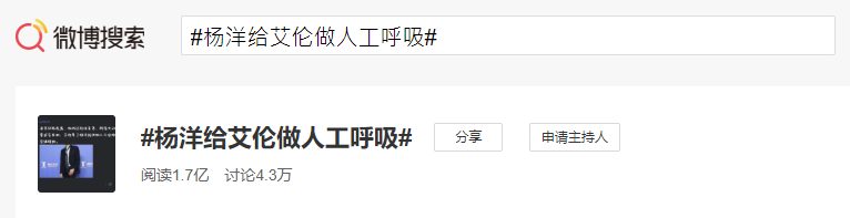 Vì lo lắng thời gian vàng để cứu người qua đi trong lúc đợi nhân viên cứu hộ đến nên Dương Dương đã lập tức hô hấp nhân tạo cho Ngải Luân. Từ khóa Dương-Dương-hô-hấp-nhân-tạo-cho-Ngải-Luân đã đạt 170 triệu lượt tìm kiếm trên Weibo.