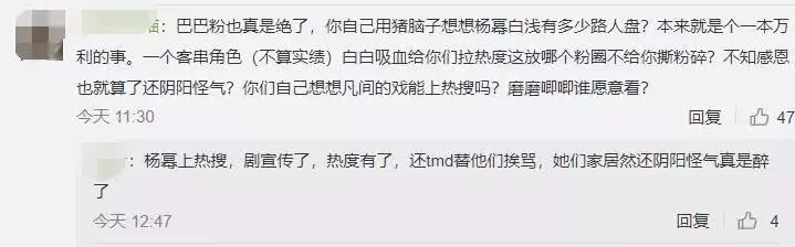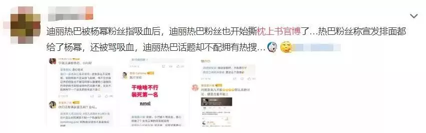 Tuy nhiên, fan Dương Mịch cũng chẳng phải “dạng vừa”, mỉa mai fan Địch Lệ Nhiệt Ba không biết tốt xấu, phim được hot ké nhờ thần tượng nhà họ nhưng lại không biết điều: “Hot nhờ Dương Mịch thì chưa hề lên tiếng nói câu cảm ơn lại còn quay ngược chỉ trích mắng chửi, thật vô liêm sỉ!“. Hiện tại, fan hai nhà Dương Mịch - Địch Lệ Nhiệt Ba xung khắc như nước với lửa, cuộc chiến hai bên vô cùng gay gắt chưa có dấu hiệu dừng lại.