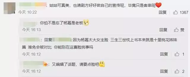 Chính vì những bài viết đăng tải tích cực về Dương Mịch trong Chẩm thượng thư khiến những người chưa xem phim hiểu nhầm, liên tục bình luận hỏi nữ chính của bộ phim này rốt cuộc là ai? Vì thế, fan Địch Lệ Nhiệt Ba vô cùng tức giận, đứng ra chất vấn, chỉ trích nhà sản xuất chỉ biết đến có Dương Mịch: “Bài đăng quảng bá lúc nào cũng đem Dương Mịch ra, muốn thế thì in mặt cô ta đi PR luôn đi. Địch Lệ Nhiệt Ba không xứng đáng được lên hot-search hay sao @Gia Hành studio?”