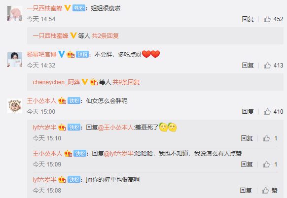 Đối với dòng trạng thái của Dương Mịch, nhiều fans đã vào bình luận: “Không mập đâu ạ, chúng em mập, chị ốm”, “Chị ốm lắm rồi đó”, “Ngưỡng mộ chết mất”,… Trong ấn tượng của nhiều người, từ khi ra mắt đến nay, Dương Minh hầu như không hề mập qua.
