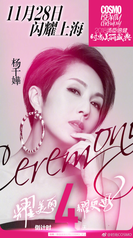 Vừa qua, ban tổ chức của chương trình COSMO Thời Thượng Mỹ Lệ Thịnh Điển (Lễ hội sắc đẹp thời trang COSMO) lần thứ 25 năm 2018 đã công bố danh sách những ngôi sao hàng đầu trong làng giải trí Hoa ngữ sẽ đến tham dự sự kiện thường niên được diễn ra long trọng tại thành phố Bắc Kinh vào ngày 28/11 sắp tới như Lý Băng Băng, Dương Mịch, Lý Dịch Phong, Đặng Luân, Ngô Lỗi, Trần Hạo Nhiên, Đường Yên…