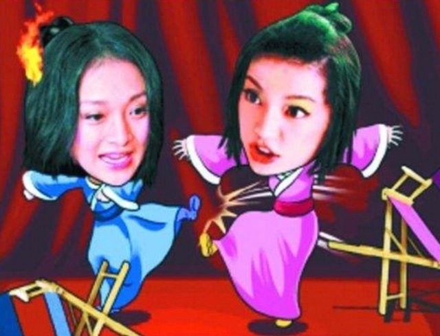 Tranh biếm họa về vụ tranh chấp liên quan đến ghế giữa Triệu Vy và Châu Tấn…