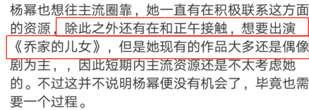 Tuy nhiên, ở thời điểm hiện tại, Dương Mịch thường xuyên đóng thể loại phim thần tượng, thế nên những nhà sản xuất phim chính kịch không cân nhắc để gửi lời mời đến nàng tiểu hoa. Thông tin này cũng không nói rõ khả năng Dương Mịch trúng vai, dù sao lựa chọn nữ chính cho một bộ phim cũng cần cả một quá trình.