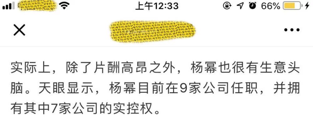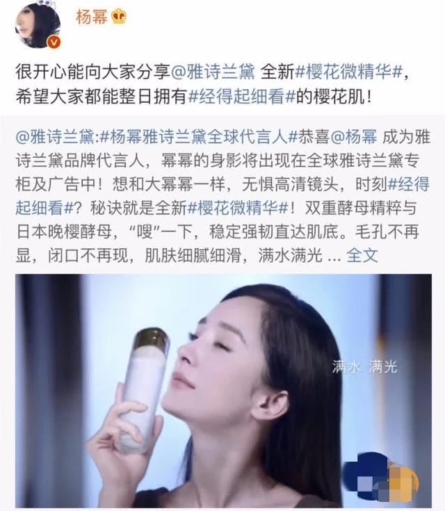 Gần đây, Dương Mịch được “nâng cấp”, từ người đại diện Châu Á - Thái Bình Dương lên thành đại diện toàn cầu của Estée Lauder với thời hạn hợp đồng trong vòng hai năm, đủ để thấy thương hiệu nổi tiếng ưu ái và tin tưởng cô đến dường nào. Thù lao cao và đại ngôn tốt mặc dù là nguyên nhân chủ yếu đến từ sức ảnh hưởng, quyết định “giá trị” bản thân của nữ diễn viên thì Dương Mịch cũng là một người hết sức tài tình trong việc kinh doanh khi ký kết nhiều nghệ nhân tài giỏi trong công ty mà mình làm cổ đông. Dương Mịch trước mắt có 9 công ty khác nhau, ngoài ra còn có quyền khống chế trực tiếp với 7 công ty khác.