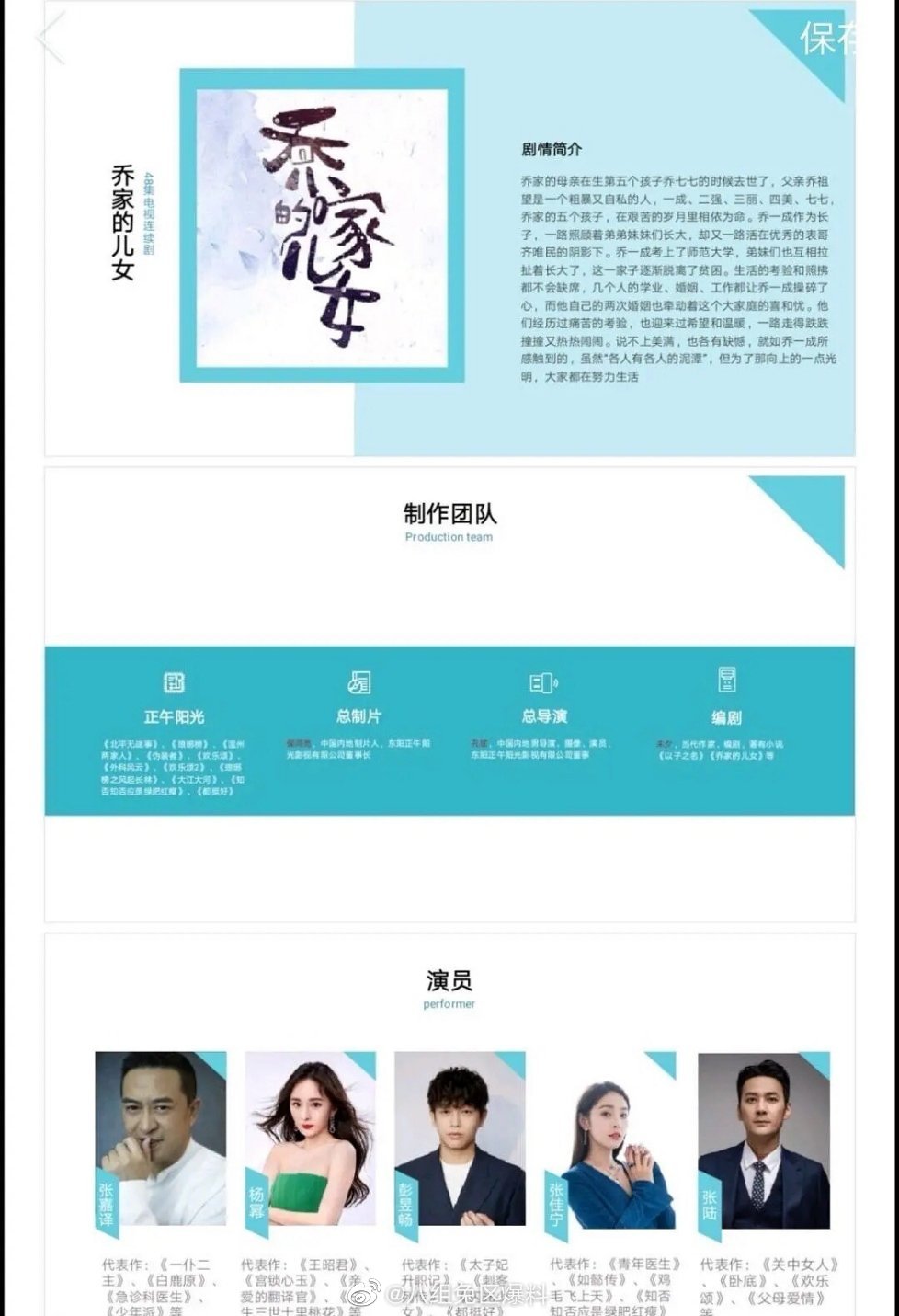 Mới đây, trên mạng xuất hiện tin Con gái nhà họ Kiều sẽ giao cho Trương Gia Dịch, Dương Mịch và Bành Dục Sướng đảm nhận vai chính.