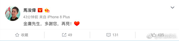 Mã Tuấn Vỹ: “Kim Dung tiên sinh, cảm ơn Ông, xin tạm biệt!”