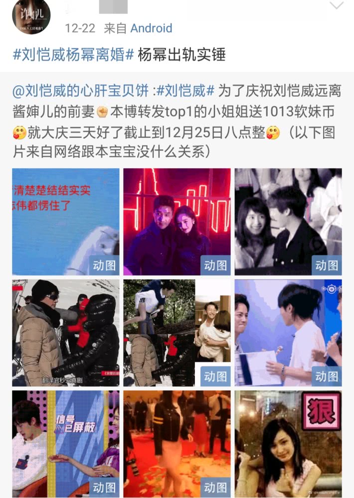 Thế nhưng, cũng kể từ khi tin Lưu Khải Uy và Dương Mịch ly hôn, có một cư dân mạng đã đăng lên những tấm hình thân mật Dương Mịch chụp chung với vô số với nam minh tinh khác, cho biết Dương Mịch sớm đã ngoại tình trước Lưu Khải Uy rồi.