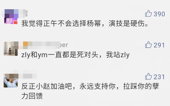 Phần lớn ý kiến của dân mạng đánh giá: “Tôi cảm thấy Chính Ngọ sẽ không lựa chọn Dương Mịch, diễn xuất của cô ta cực kỳ tệ!”, “Triệu Lệ Dĩnh cùng Dương Mịch luôn là đối thủ một mất một còn, tôi đứng về phía Triệu Lệ Dĩnh!”, “Dù sao thì Tiểu Triệu cố lên nha, tôi vĩnh viễn ủng hộ bạn!”, “Nói thật Triệu Lệ Dĩnh có kỹ năng diễn xuất, khán giả không phải mù mà không nhận ra được điều đó”.