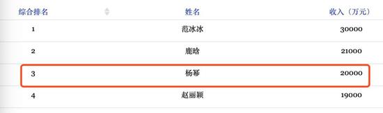 Dựa theo bảng báo cáo của Forbes về danh sách những nghệ nhân năm 2017 của Trung Quốc, Dương Mịch và Lưu Khải Uy đều góp tên trong danh sách những diễn viên có thu nhập cao, trong đó Dương Mịch thu nhập đạt được 200 triệu NDT (690 tỷ đồng), xếp vị trí thứ 3 trong bảng tổng hợp, còn Lưu Khải Uy với thu nhập 75 triệu NDT (258 tỷ đồng) xếp vị trí thứ 76.