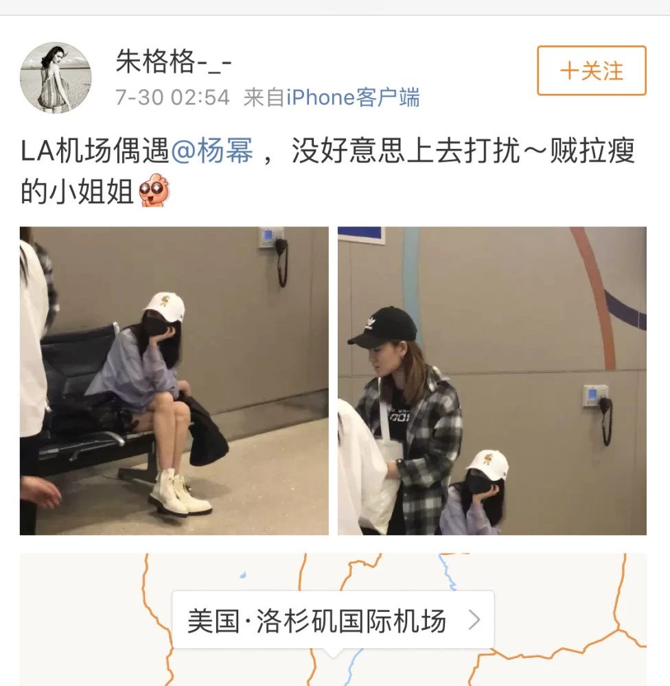Hai giờ sáng ngày hôm nay (30.07), dân mạng tại Mỹ vô tình gặp được Dương Mịch tại sân bay của Los Angeles. Lúc đó, nữ diễn viên đang ngồi đợi trên hàng ghế dài, vẻ mặt của cô trông khá mệt mỏi. Dương Mịch đội mũ trắng và mang khẩu trang, dùng tay chống cằm, tựa hồ đang quan sát nhân viên làm thủ tục.